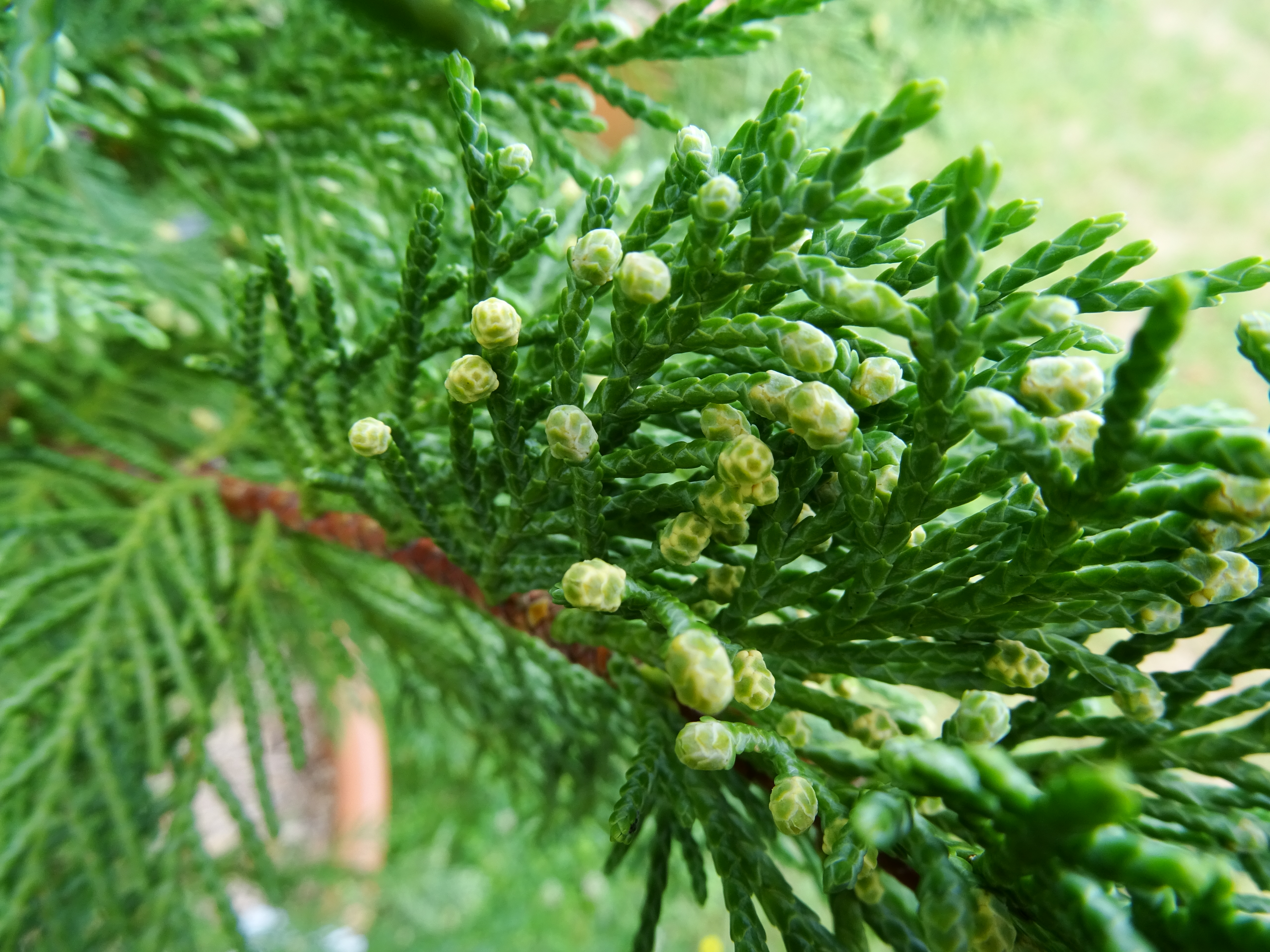 Cyprès : Le Cyprès de Leyland est un hybride naturel entre un Cyprès de lambert et un Cyprès de nootka. Il est multiplié par bouturage, les arbres obtenus sont des clones. Il n’en existe que quatre différents. Les pieds issus d’un même clone émettent du pollen au même moment, le plus précoce commence mi-décembre.